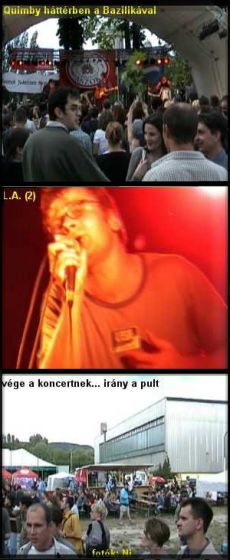 Azért megtaláltuk a sportkocsmát a boxmeccs alatt, mármint a sportcsarnok (ahol a kadett boxmeccs volt) alatt, és felpakoltunk egy kis borocskát, amivel meg nem mehettünk be a fesztre. Maradt a Duna part. Nem igazan bántam, elképzeltem egy víz alatti világot, ahol azok a fák a legmagasabb hegyek, amik a vízből nőttek ki, a levegő pedig a felhő, ami a magas hegyek csúcsát mindig takarja. A víz pedig értelemszerűen az a közeg, ahol a víz alatti világ lakosai akkor élnek, ha nem éppen iszapkocsmáikban szórakoznak, vagy kavics házaikban alszanak, vagy amikor épp nem kagylóműhelyükben dolgoznak. Lassan megérkezett a banda. Azok a srácok, akikkel ugyan nem beszéltük meg, hogy idén nyáron szétfesztiválozzuk az összes bakancsunkat, de valahogy mégis így alakult. Itt van pl. Cs., aki ugyanúgy képes egy-egy estéért órákat vonatozni, hogy megnézze ugyanazon zenekarok koncertjét, amelyeket már tizennégyszer láthatott az elmúlt egy hónapban. Aztán hajnali négykor felül az első vonatra, hogy a pihentető zötykölődés után hulla fáradtan menjen be dolgozni. A zuhanyozást, gondolom, valahol megoldja, de már volt olyan is, hogy mekiben mostunk fogat. Szóval Cs. régi harcos társ. De T. is az, aki viszont autóval flangál, és 80 km-es távolságig hajlandó elindulni hétköznap is koncertre. De csak ha nem a hatos út mellett van a klub, ahol fellépnek a kedvencek, és mondjuk nem esik a hó. T. tehát egy kicsit válogatósabb. V. viszont sokszor nyűgös, bár próbálja titkolni. Viszont ő is hajlandó átéjszakázni a hideg nyárestéket, neki azonban nem kell dolgozóba menni másnap. B. már okosan bulizik, nem csak úgy bele a vakvilágba, ahogy tőlem tanulhatta volna. Neki kifejlett értékrendszere van, és inkább csepűrágókat néz Veszprémben, mintsem belessen Cs. hibájába (persze lehetne akár az enyém is, kérdés, hogy mennyire beszélhetünk egyáltalán hibáról) aki háromszor is elmegy egyazon zenekar koncertjére egy héten (pl: Mezőtúr, Tata, Tokaj, egy kis túlzással Esztergom is ebbe a körbe tartozik).