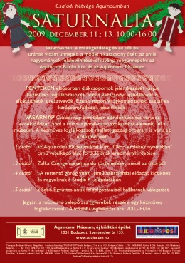 szerző: PjotrSaturnalia - Családi hétvége Aquincumban 2009. december 11 és 13. 10:00-16:00. Aquincumi Múzeum, új kiállítási épület – Budapest (III. Szentendrei út 135.)