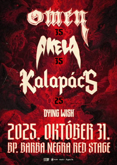 Október 31-én a hazai metal színtér patinás zenekarai közül három jubiláló csapattal, valamint egy vendég fellépővel egy minifesztiválnak ad helyet a fővárosi Barba Negra. Az Omen / Akela / Kalapács triumvirátusnak köszönhetően egy klasszikus heavy / power / thrash metal ünnep van készülőben, amelyen a kemény zene rajongói az elmúlt évtizedekben született, és idővel méltán közismert és kedvelt rockhimnuszokat elsőkézből, maguktól az alkotóktól hallhatják egy közös bulin, természetesen a legfrissebb szerzeményekről sem elfeledkezve. Mindehhez a szintén már bőven nem tinédzserkorú - jövőre 30 éves - Dying Wish heavy / melodeath műsora adja meg az alaphangulatot.