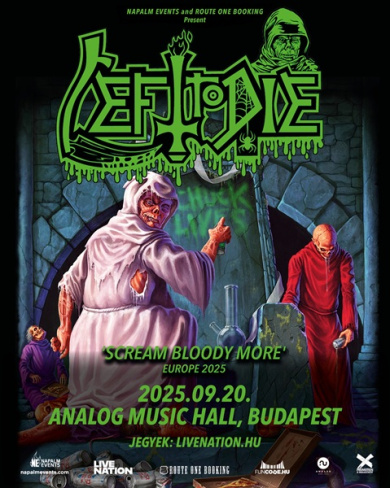 A Left To Die zenekar elsősorban a Death korai korszakát állítja középpontba, így a koncertprogramban várhatóan olyan albumok dalai csendülnek fel, mint a Leprosy (1988) vagy a Scream Bloody Gore (1987). Ugyanitt az Analogban 2024-ben is nagyszerű koncertet adott a csapat, így az idei koncert egyfajta jutalomként is felfogható. Az esemény jó alkalmat kínál mindazoknak, akik szeretnének tisztelegni a legendás Death előtt, és élőben átélni a death metal egyik legfontosabb fejezetének hangulatát.