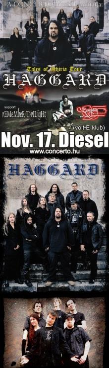 A Haggard sajátos módon keveri a reneszánsz/barokkos, teátrális nagyzenekari muzsikát a fémesebb, gitár- és doborientált zúzásokkal. A hangszerek mellett az énekben is megtalálható ez a kettősség: a fülsimogató női szoprán mellett a brutális hörgés is szerves részét képezi a daloknak. Fellépéseik mindig élményszámba mennek, volt olyan alkalom, ahol egyszerre 21 zenész keltette életre a színpadon a nagy hatású, monumentális Haggard dalokat. Most 12 tagot számlál a zenekar, amely Asis Nasseri énekes/gitáros vezetésével adja elő a megkapó szerzeményeket. Már Magyarországon is láthattuk őket, a 2005-ös, Gothica fesztiválos fellépésük profizmusa és csodás hangulata elbűvölte az összes jelenlévőt. Az 1991-ben alakult zenekar eredetileg death metal stílusban kezdett zenélni, majd az első demót követően hozták be a klasszikus hangszereket és a szimfonikus hatásokat a muzsikájukba. Eddig négy nagylemezt adtak ki, a legújabb művük idén jelent meg Tales Of Ithiria címmel. Egy csodás fantasy történetet mesél el ez konceptalbum, melyet nagy élmény lesz hallani a Diesel Club termében, a többi régi klasszikus Haggard szerzeménnyel egyetemben.
