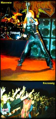 A fesztivál pénteki nyitónapjának fő fellépője a Manowar, és a leghosszabbnak tűnő színpadi átszerelés következett. A türelem úgy fogyott a várakozókban, mint a lepergő homokóra szemei. A sötétség beálltával a koncertet egy oratórikus művel kezdték el. Ennek a műnek a hangja a kezdetekkor még elviselhető volt, de úgy érezhettük, hogy a kiáradó hangerő egyre kegyetlenebbé és elviselhetetlenebbé teszi a bevezető akkordokat. Ez úgy vágta tönkre a hallójáratainkat, hogy azt már a legkiválóbb hallász” sem tudta a koncert után helyrerakni. A hangerőt még a színpadon szisztematikus sorrendben elhelyezett, 2*8 db Marshall hangfal-erődítmény is emelte. Ezek szemből áldották a jó népet, és a Manowar tagjait hátulról. A zenekari tagok egyenként szivárogtak be, talpig bőrben. Colombus a dobok mögé, Logan a színpad baljára, De Maio 4/8 húros basszusgitárjával a színpad jobbjára, és legvégül, de nem utolsósorban Adams, Felejthetetlenné tették ezt az esti koncertet azoknak a fanatikus metalbarátoknak, akik még szemerkélő esőben is végi tudták bulizni ezt a hibátlan koncertet egy jó kis RNR-ra. A legelsőnek elhangzó zenekarnévadó Manowar” első akkordjai után a rajongók teljesen hegyekben állva lapultak egymásnak. Ahogy kell, olyan Manowar-osan szólaltak meg a jól ismert slágerek: Manowar”; Blood of My Enemies”; Kill With Power”, Warriors of the World”; „ My Spirit Lives On”; „ Heart of Steel”; String of the Bumblebee”; „ Fighting the World”, „ Kings of Metal”; Sign of the Hammer”, The Power”; House of Death”; Hail and Kill”; Nessu Dorma”; Black Wind Fire and Steel”. Logan kiváló gitárjátékát nem szívesen felejteném ki. Ahogy megtudta szólaltatni ezeket a lírai dalokat, és azokat a tökéletesen előadott, keményebb hangzású metalhimnuszokat! Logan gitárvirtuóz, aki kiváló szólókkal és gitártechnikával lepte meg a rajongókat. Nem csak a Warriors of the World” slágernél, hanem az összes többi műsorra tűzött számnál is. De Maio a másik kiválóság, a basszusgitár mágus. Spontán egyszerűséggel szólaltatta meg a String of the Bumblebee” barokk dallamforgács köré épített Dongó átiratot a megdöbbent közönségének.