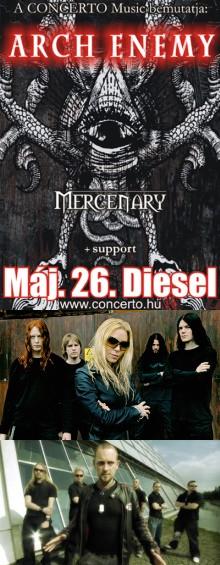 A május 26-ai kedd este végre elhozza azt, amire a dallamos death metal stílus kedvelői már vártak egy ideje: magyar színpadon üdvözölhetjük az Arch Enemy-t. Korábban már több ízben is láthattuk volna az Amott tesók zenekarát kis hazánkban (például 2003-ban a Nevermore előtt a még akkori nevén E-klubban), ám most tényleg a Diesel Klub színpadán fogjuk látni az Arch Enemy zenészeit. A svéd zenekar előtt pedig a melodikus power/death metal muzsikát játszó dán Mercenary fog fellépni, akik már több alkalommal bizonyították magyar színpadokon rátermettségüket, legutóbb az A38-as hajóban zenéltek tavaly a Death Angel előtt.