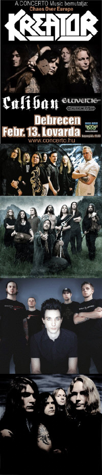 Szerintem mindenki felkapta a szemöldökét, amikor kiderült, hogy a komoly érdeklődésre számot tartó Kreator, Caliban, Eluveitie, Emergency Gate bulit Debrecenbe szervezték. Érthető és jogos is, hogy a nyomasztó főváros-centrikusság mellett egyéb helyszíneket is próbálnak felrázni, Debrecen pedig alkalmas erre, hiszen az Iron Maiden-t, a Nightwish-t, és a Motörhead-et is vendégül látta már a város. Mindazonáltal tegyük hozzá, hogy főváros-centrikusság ide vagy oda, nem véletlenül az ország közepén lévő Budapestre szervezik az események nagy részét, hiszen az odautazás az ország minden táján még tűréshatáron belül van. A debreceni utat viszont már nem igazán fogják bevállalni mondjuk Sopronból, és ez meg is látszott a mai estén. Sokan voltak azért, de a Lovardában egy jó félház szellős 3/4 ház jött össze, amit azért egy budapesti buli überelt volna. Na mindegy, elég volt a mellébeszélésből, hiszen ha a Kreator érkezik a határaink közé, még Alsógyökérfalvára is elutaztam volna bármikor.