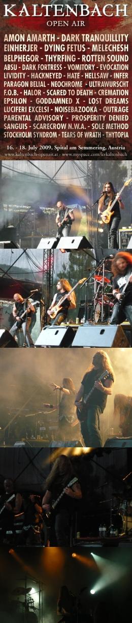 Az ausztriai Semmering hegyekben évente megrendezésre kerülő Kaltenbach Open Air fesztivál idén a hetedik alkalmát ünnepelte. A tavalyihoz képest a kettőről háromnaposra bővült a fesztivál, és a helyszín is változott. Kis különítményünk immár a harmadik alkalommal látogatott el Ausztriába, hogy az előző két év kellemes tapasztalatai alapján idén is részt vegyünk a rendezvényen. Most is volt pár olyan húzónév a 38 zenekart felvonultató programban, mint a Dark Tranquilliy, Amon Amarth, Dying Fetus, Einherjer, Absu, Melechesh, Rotten Sound, Thyrfing, Vomitory, melyek megteremtették a kellő motivációt a fesztiválon való részvételhez.