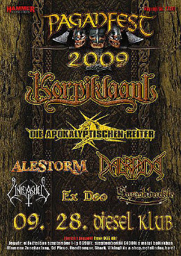 szerző: MorelloPaganfest 2009 Korpiklaani, Unleashed, Die Apocalyptischen Reiter, Alestorm, Dalriada, Ex Deo, Swashbuckle 2009. szeptember 28., Diesel Klub