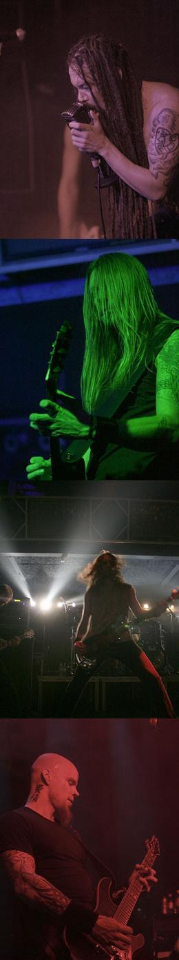 Az ígéreteknek megfelelően elég korán lépett a színpadra az Amorphis legénysége. Ilyen feszített tempójú turnén azért nem meglepő, ha kénytelenek már szinte nyolckor bedobni magukat, hogy azután rögtön a buszra pattanva elérjék a követező koncerthelyszínt. A lényeg, hogy ekkorra már jócskán megtöltötte a nézősereg a Diesel küzdőterét, majd jöttek Joutsenék és hatalmas energiával vetették bele magukat a buliba. A nyitó Silver Bride és a szintén új lemezes Sampo után azért rendesen szemezgettek korábbi lemezeikről is, így amit én személy szerint elvártam tőlük, azt precízen meg is kaptam. Hisz milyen is lenne egy Amorphis koncert, ha nem játszanák el nekünk az Alone-t, a Black Winter Day-t vagy a My Kentele-t? Nem tudni, hisz ilyen még nem nagyon volt, szerencsénkre. Igaz utóbbiak a ráadás részét képezték az estének, de addig is jó adag ízelítőt kaptunk a Skyforger albumról és megcsodálhattuk Tomi Joutsen káprázatos rasztáit is, ami már szinte önálló életet él mellette. Aztán persze kaptunk még ízelítőt a két korábbi Tomival felvett anyagról is, na meg az örök kedvenc Tuonela-ról is! Arról se feledkezzünk meg, hogy Joutsen hangja élőben sokadszorra is ugyanolyan lenyűgöző, mintha csak szűrőeszközök tucatjain keresztül jutnak el hozzánk. Bár lehet, hogy az a gyönyörű old-school mikrofon, amit itt is és klipjeiben is használ, hozzátesz valamit a hangzáshoz. Ami a többi zenekartagot illeti, nos hát a hosszú évek alatt volt idő odáig csiszolni tehetségüket, hogy ami náluk átlagos teljesítmény, az a mi szemszögünkből nézve mesteri.