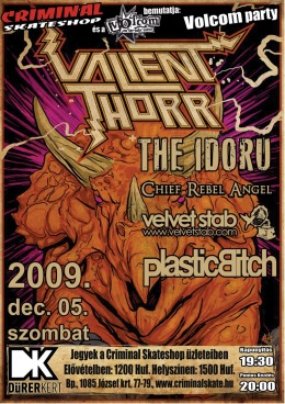szerző: PjotrVolcom party – űrutazók a Dürerben! Valient Thorr, The Idoru, Chief Rebel Angel, Velvet Stab és Plastic Bitch 2009. december 5., szombat, 19:30., Dürer Kert, Nagyterem - Budapest