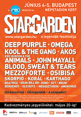 Újabb hazai legendák egész sorával bővült a StarGarden Fesztivál programja. A Népstadion Kertben június 4-én és 5-én megrendezésre kerülő új esemény több generáció legjelentősebb ikonjait vonultatja fel. A korábban bejelentett nemzetközi és hazai sztárok többek között az Deep Purple, a The Animals, az Omega, Ákos és a Korál - mellett a Tátrai Band, a Skorpió, és a Karthago is fellép a fesztiválon. Közben a StarGarden gasztronómiai kínálata is egyre bővül: a legnevesebb hazai borászok és pálinkászok mellett partnerként kapcsolódott az eseményhez a Csabai Kolbászfesztivál is. Minderre most jelentős kedvezménnyel válthat jegyet, aki barátjával vagy kedvesével tervezi eltölteni itt ezt a hétvégét.