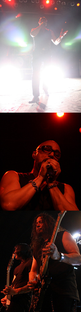 Egyébként szinte tökéletesen szólt az összes dal, függetlenül attól, hogy éppen samplerről ment e egy-egy rész vagy élőben. Talán csak a mikrofon időnkénti recsegése sértette a fület, ezt viszony könnyen feledtette velünk Tate bámulatos hangja. Itt nem csak az énekre gondolok, bár kétség kívül az sem kopott meg az idők során, hanem ahogy átvezette az egyes nótákat. Ilyen orgánummal akár lehet ő is egy coming soon hang a moziban, pláne, hogy igencsak meggyőzően és érzelmekkel teli módon képes megszólítani a közönséget (más kérdés, hogy idén már két hollywoodi filmben is szerepet kapott). Mondjuk az is igaz, hogy a szépen sorban következő Queensr˙che-klasszikusok már önmagukban is heves érzelmeket váltottak ki az ott lévőkből. Nem csak az úgymond nagyobb albumok dalai szóltak hatásosan, hanem például a tavaly megjelent American Soldier három-négy tétele (a Man Down és a Dead Man´s Words abszolút csúcs) is. Ugyanakkor az olyan klasszikusok, mint az I Don´t Believe in Love, a Breaking the Silence, a Jet City Woman, vagy a Walk in the Shadows szinte már földöntúlian szépen szóltak a csarnok falain belül. A záró Empire-ban a technika is besegített frontemberünknek, úgy látszik egyedül már nem képes kiénekelni azt, amit régen igen, ha csak nem más okból került aktiválásra a sampler. Ami mindenképpen kedvére tehetett még a fanatikusoknak, hogy néhány nagyon ritkán játszott dalt is elővett a brigád, például a The Thin Line személyében. Tate elkortyolt egy pohárkával saját termelésű borából is a másfél órás műsor alatt, kár, hogy azt mi csak messziről szemlélhettük.