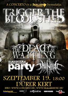 A nyári szezon után az őszi estékre máris kellemes kikapcsolódást ígér az Anglia egyik legkeményebb zenekaraként emlegetett Trigger The Bloodshed budapesti fellépése. A Dürer Kert kistermébenszeptember 19-én még a szintén szigetországi, metalcore-ban utazó The Dead Lay Waiting és a hazai Slaughter At The Engagement Party, illetve Brainlust bulijait lehet majd megtekinteni.