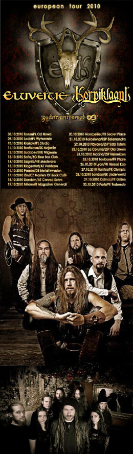 Még fel se száradt a sör az egykor Wigwamként ismert Club 202 padlóján a szeptemberi Heidenfest buli kapcsán, amikor nem sokra rá újabb folk metal őrületet élhetett át a klub, mégpedig a Korpiklaani és az Eluveitie főszereplésével. A finn Korpiklaani olyan zenekar, akik nélkül egyszerűen nem telhet el év Magyarországon, biztos hogy valamilyen turné/fesztivál/klubbuli keretében viszontláthatjuk őket újra és újra. A svájci Eluveitie-nél valami hasonló kezd kialakulni, ők is már többször szerepeltek nálunk, és egyértelmű, hogy szintén nem ez lesz az utolsó fellépésük Magyarországon. Az egyre nagyobb divattá váló folk metal hullám úgy tűnik erősebb, mint valaha, de mindez inkább pozitívum, ha a stílus legismertebb neveinek számító zenekarok ezáltal sűrűbb látogatásokat tesznek nálunk.