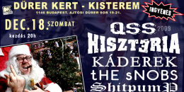 December 18-án, Punk X Mass party lesz a a Dürer kert kistermében. Fellép Barangó szabadcsapata a QSS, az új lemezzel előrukkoló Hisztéria, az anarcho punk attitude a tHE sNOBS, a Káderek, az újjáalakult Shitpump és a Pazar.