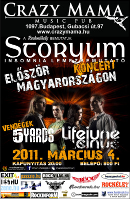 Az est a pozsonyi indie-prog Storyum tavaly év végén, az Edge Records gondozásában megjelent Insomnia című bemutatkozó albumának első magyarországi bemutatója alkalmából szerveződött. Az ősbemutató december 27-én történt a szlovákiai Somorján, ahol a vendég az Arizona zenekar volt, a nézőszám pedig várakozáson felüli eredményt produkált.