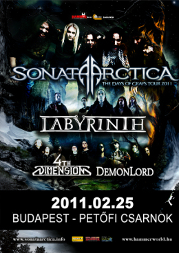 szerző: PjotrSonata Arctica, Labyrinth, Demonlord és 4th Dimension a Pecsában 2011. február 25.(péntek), Petőfi Csarnok - Budapest