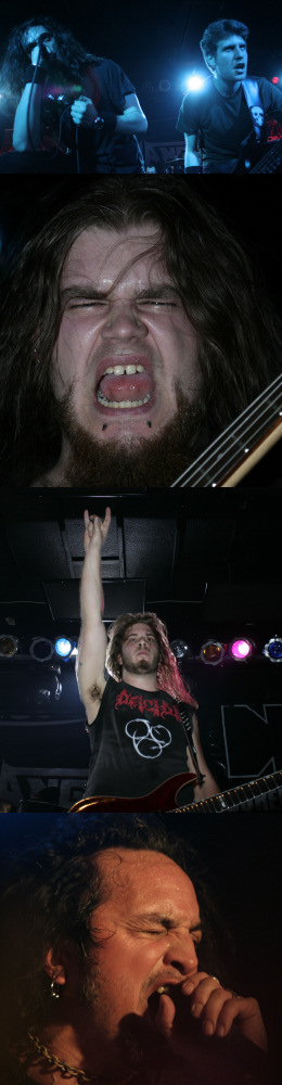 A következő két formáció, az Adimirion és a Resistance ezzel szemben már egyáltalán nem fogott meg. Előbbi hasonlóképpen thrash-metalcore ötvözetet játszott, utóbbi pedig inkább a deathcore irányából bugyborékolt, de kiállása és egyénisége egyik bandának sem volt. Unalmasak voltak a nóták is, így egyre inkább arra vetemedtünk, hogy a szomszédos kisteremben lévő bulira somfordáljunk át, ahol valami amatőr light rock/alteros est volt, (egyelőre) nagyságrendekkel több jelenlévővel. Azért valahol ez is durva. Másrészt tele volt az egész terem 15-17 éves kiscsajokkal, akik minden elhangzó nótát fülrepesztő sikoltozással nyugtáztak (a hangorkánba mi is elhelyeztünk pár öblös hörgést, amúgy színesítő jelleggel. Biztos örültek nekünk, haha...!) Épp ekkortájt érkezett meg a Dürer Kertbe a Death Angel tagság is, Mark Osegueda például olyan fülig érő vigyorral nézett körül, mintha egyenesen a Nirvánába lépett volna be. Szegénynek ekkor talán még nem esett le, hogy ez a népség bizony nem az ő koncertjükre jött, hanem csak egyen-fekete pólós, pocakosodó metalosokat fog majd maga előtt látni. Valahogy annyira magam elé tudom képzelni, ahogy ezt realizálva egyre inkább olvad le a jó Mark arcáról az eszelős vigyor, haha...!