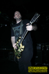 No de végre lementek az előzenekarok, hátra volt még az „Öngyi Angyi”, vagyis a Suicidal Angels. Ők már rutinos csapatnak számítanak, hiszen a Dead Again címmel megjelent albumuk már a harmadik nagylemez a sorban. Kisebb csodával felér, hogy végre láthattuk a bandát a hazai deszkákon, ugyanis (nagy bánatukra) valószínűleg igen közeli viszonyt ápolhatnak bizonyos Murphy nevű úriemberrel, akinek áldásos tevékenysége nyomán mindig a legutolsó pillanatban maradt el a Suicidal Angels magyarországi koncertje. Jöttek volna a Bonded By Blood/Fueled By Fire duó társaságában és az Onslaught-tal egyaránt, de végül sosem sikerült még bemutatkozniuk nálunk. Én magam fesztiválon, nagy színpadon láttam már őket, ahol nem igazán tudtak érvényesülni, de bíztam benne, hogy egy közvetlenebb hangulatú klubbuli lesz az ő igazi terepük. Nem is tévedtem, ez a fajta oldschool thrash ha jól játsszák, legyalul mindenkit a teremben. És a Suicidal Angels jól játszotta. Már a színpadra lépésükkor érződött a levegőben, hogy energikus, kemény bulinak nézünk elébe. A görögök nem sokat finomkodtak, rögtön elkezdték reszelni a friss lemez nyitónótáját, a Reborn In Violence-t. A létszám ekkorra már egy fokkal használhatóbb szintet ütött meg, bele is vetették magukat sokan a tombolásba. A banda erőteljesen, nyersen szólt, de ez illett is az ő stílusokhoz. Főleg a Dead Again lemez volt napirenden, de pár dal erejéig a korábbi alkotásokat is megidézték. Különösen nagyot ütöttek a Bleeding Holocaust, Dead Again, és a koncertzáró Apokathilosis nóták. Ahogy oldschool thrash bandához illik, az ő zenei világuk sem túlzottan bonyolult: szélvészgyors reszelés, folyamatos tuka-tuka ritmus, sivítós szólók, agresszív szövegköpködés. Vagyis ahogy a Sepultura a Schizophrenia/Beneath időszak alatt, illetve a korai Slayer és Exodus tanította. Gyakorlatilag így épül fel minden Suicidal Angels szám, és mindez már középtávon is unalmassá vált volna, ha a görögök nem produkálnak ilyen lendületes, adrenalinbombával felérő előadást, másrészt pedig ügyesen a programba iktattak olyan nótákat (Beggar Of Scorn), amelyeknek a kimértebb, már-már doomosabb tempója változatosságot jelentett az ordas száguldások közepette. A zenészek nagy élvezettel, leszegett fejjel zúztak, látszott hogy zsigerből jön nekik az energikus thrash metal, és ez az előnyére vált a bulinak. Nick Mellisourgos frontember tovább hajszolta a rajongókat az őrület felé, és meg is kapta a kért ovációt a közönségtől. Számomra bebizonyosodott, hogy van szufla a görög zenekarban, még ha a dalok kissé túlságosan is egysíkúak, monotonitásba fordulnak (ez az általam látott fesztivál koncerten rendesen ki is jött). Viszont egy klubbuliban totálisan átjön az energia, ez az ő igazi terepük, ahol falbontó hangulatot teremt az „Öngyi Angyi”.