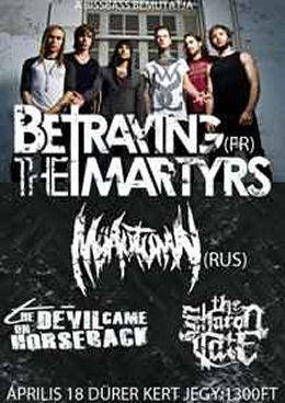 A Betraying The Martyrs az egyik legnépszerűbb francia modern metál zenekar, első Breath In Life című nagy lemezét Párizsból érkezik bemutatni hozzánk. A 2008-ban alakult 6 tagú együttes stílusát a szimfonikus keresztény metalcore jelző tudná talán a legjobban lefesteni. 2009-es „The Hurt, The Divine, The Light” nevű EP-jükkel sikerült felkelteni az érdeklődést, s jelentős rajongótábort szerezni. Azóta átestek egy gitáros és egy énekes cserén, (utóbbi posztra egy angol születésű úr személyében találtak pótlást) ám ez nem törte meg őket, amit a Dürerben is bizonyítani fognak!