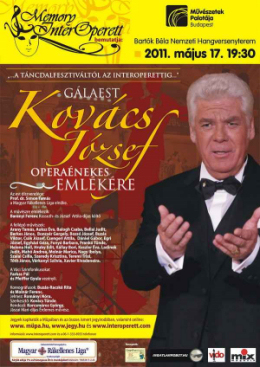 Kovács József, a közelmúltban elhunyt operaénekes májusban lenne 65 éves. Ennek emlékére a Memory-Interoperett szervezésében Gálaest kerül megrendezésre 2011. május 17-én, 19 óra 30 perctől a Művészetek Palotája Bartók Béla Nemzeti Hangversenytermében.