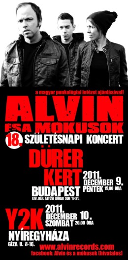Magyarország első számú punk-rock bandája nagykorú lett, és ehhez méltó koncertre készülnek december 9-én és 10-én. Az Alvin és a Mókusok hálás azért, hogy a közönség szeretetével már 18 éve életben tartja a zenekart, sőt, hálával gondolnak azokra is, akik gyűlölik őket, hiszen ők is gondolnak rájuk, beszélnek róluk, terjesztik a hírüket. A 18 éves ünnepi koncert hosszabb lesz a szokásosnál, tehát mindenki úgy készüljön, hogy másfél óránál is tovább tombolhat a színpad előtt. A zenekar készül meglepetésekkel is, de erről Alvin egy szót sem árult el, mert akkor már nem lesz igazi meglepetés.