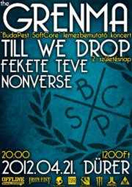 A csapat új lemeze minden korábbinál szókimondóbbra sikeredett, ezúttal túlnyomó hangsúlyt fektettek a közvetítendő üzenetre. Lényegi üzenete természetesen a fiataloknak szól, hisz az „ő kezükben a jövő”. A 11 új számot remélhetőleg A-tól Cettig hallhatjuk majd szombat este. - A magyarok ismét német kézre jutottak. – jellemezhetnénk így is a Till We Drop-ot, hisz a hazai pop-punkot metalcore-al keverő együttes német kiadójával manapság a leggyorsabban feltörekvő bandák egyikévé nőtte ki magát. Második születésnapját ünneplő csapat, a tavaly év végi lemezszerződés és Európa-turné mellett harmadik hazai turnéjukon vesz részt. Előzenekarjaik a Fekete Teve, az itthoni rock egyik legsajátosabb hangzású zenekara, akik vélhetően a tavaly év végén megjelentetett Rőzse-dalok című EP-jüket, (amelyet meg is filmesítettek) hozzák el nekünk, valamint az estét nyitó a Nonverse a fővárosi klubélet egyik friss és ígéretes hangja lesz.
