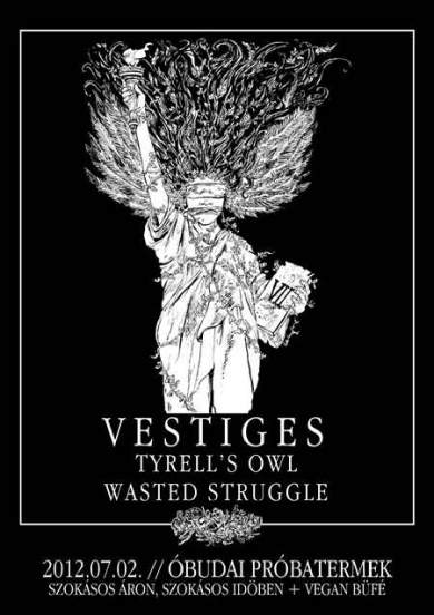 A Fehér Ház mellől érkezik Amerika egyik vegyes felvágottja, a hardcore, postblack metal, crust/d-beat, screamo és post rock elemeket felvonultató és naturalisztikával foglalkozó szövegvilágot bemutató Vestiges. A Replish Records képviseletében fellépő félelmetesen elvont, monoton, pár akkordos igazi fejcsóválós hardcore zenekar első európai turnéján egyből megtalálta hőn szeretett Pest city-nket, hogy bemutassa mit is tudnak ők.