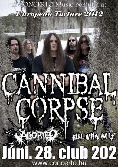 A death metal koronázatlan királya, vagyis a Cannibal Corpse nem szeret a babérjain ülni: idén jelentették meg 12. stúdiólemezüket, és azóta megállás nélkül koncerteznek. Bár az első hullámban elkerültek minket, a nyári fesztiválszezon előtt azért hazai rajongóknak is megmutatják, hogy miért tartják őket a világ legbrutálisabb zenekarának! Június 28-án a budapesti Club 202 fog áldozatul esni a zenei mészárlásnak, tettestársak a belga Aborted és a hazai Kill With Hate.