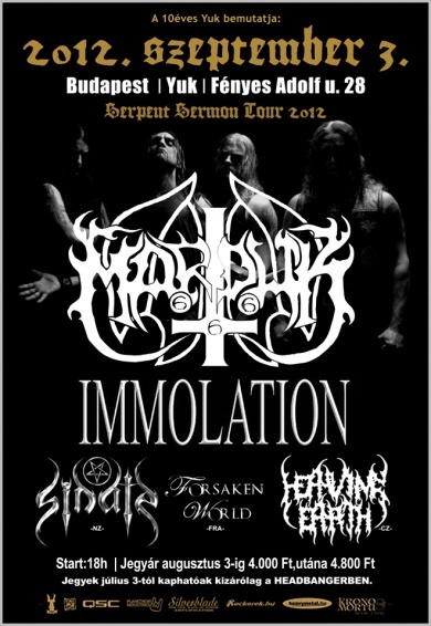 Az őszi koncertszezon egyik kiemelkedő nyitó rendezvénye a Kék Yuk szűkös pincehelyiségében megrendezett Marduk, Immolation koncert volt. Mindkét banda stílusának jól ismert, megbízhatóan alkotó brigádja, így a csalódás előre ki volt zárva. A két nagy öreg mellett három előbanda szórakoztatta még a megjelenteket, ezáltal szélesítve az este zenei repertoárját.