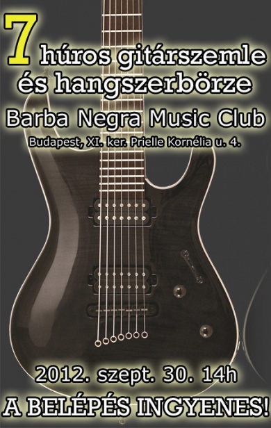 2012. szeptember 30-án a Barba Negra kalózhajója leereszti a csapóhidat a héthúros gitáron zenélők hazai közössége előtt. Egy jó hangulatú találkozó keretein belül a magyar hangszerüzletekben mostohagyerekként kezelt hét- illetve többhúros gitárok fanatikusai ízelítőt kaphatnak abból, hogy milyen élet van a belépő szintű hangszereken túl. Amire számítani lehet: egyedi készítésű mesterhangszerek, itthon ritkaságnak számító 7 és 8 húros gitárok, a legújabb Line6 erősítők a Medgyesi Hangszercenter jóvoltából, illetve egy kis bemutató performansz az egyik legelismertebb hazai héthúros-használó gitáros, Lukács Peta (Bikini, European Mantra) kezei közül.