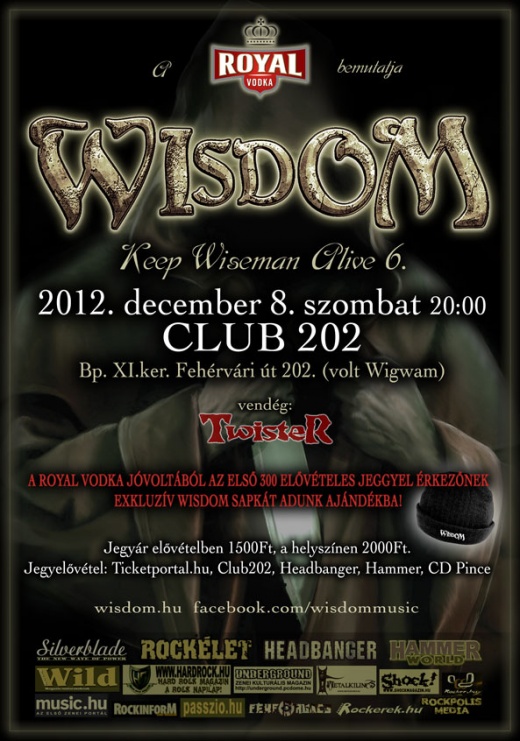 A Sabaton társaságában jelenleg Európában turnézú Wisdom zenekar decemberben visszatér Budapestre, hogy a szokásos évadzáró Keep Wiseman Alive koncertjét megtartsa. Az időpont december 8, a helyszín ezúttal is a Club 202. A jegyek elővételben 1500, helyszínen 2000 Ft-os árban kaphatók.
