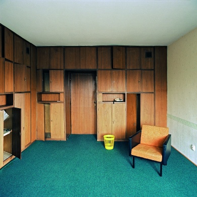 ”A művész főleg olyan helyszíneket választ, melyeket az emberek már elhagytak, melyek az eredeti funkciójukat már nem töltik be, de még őrzik valaha volt nagyságuk nyomát, amely azonban ma már nem több, mint a múlt emléke. Grospierre sorozatai azonban mindenekelőtt a korábbi politikai valóság nyomait örökítik meg, a billogot, mely a minket körülvevő vizuális kultúrába beleégett, s mely lassacskán mégiscsak elveszti erejét.„