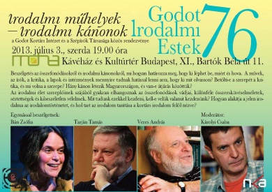 szerző: PjotrGodot Irodalmi Estek 76: Irodalmi Műhelyek – Irodalmi kánonok 2013. Július 3. 19h, Moha Kávéház és Kultúrtér - Budapest (XI. Bartók Béla út 11.)