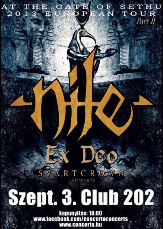 szerző: ConcertoA Concerto Music bemutatja: At The Gates of Sethu – European Tour Part II. - Nile, Ex Deo, Svart Crown 2013. szeptember 3., kedd 18h, Club 202 – Budapest