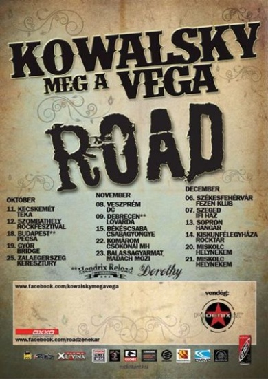 Közös országos turnén vesz részt az idén 10 éves Kowalsky meg a Vega és a Road zenekar. A 16 koncertből álló körút budapesti állomása a Petőfi Csarnok, ahol október 18-án láthatjuk a két bandát, továbbá a Dorothy és a Hendrix Reload nevű csapatokat.