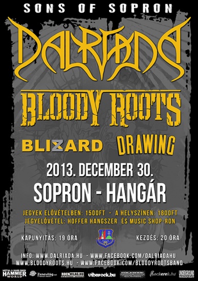 A Dalriada és a Bloody Roots közös koncertre készül, december 30-án a soproni Hangárban tartják évzáró koncertjüket! A Sons of Sopron elnevezésű rendezvény egy minifesztiválnak is beillik, hiszen a két headliner zenekar mellett további két soproni csapat, az új felállással, megújult energiákkal koncertező Blizard és a színtéren régóta jelen levő hardcore banda, a Drawing is fellép.