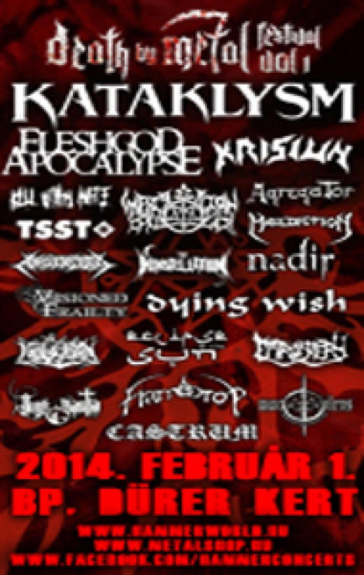 Hagyományteremtő céllal szervezi meg február 1-én a Hammer Concerts az első Death By Metal fesztivált. Összesen 20 hazai és nemzetközi zenekar játszik majd ezen az estén, így minden bizonnyal ez lesz az extrém metalt hallgatók egyik legfontosabb rendezvénye 2014-ben.