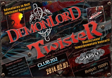 Időutazásra készül a magyar metaltörténelem egyik oszlopos tagja, a Demonlord zenekar. Első önálló korongjuk, az Adventures In Hell ugyanis éppen 15 éve jelent meg, ez alkalomból ünnepelnek a Twister és Noa Rock társaságában a fehérvári úti legendás klubban.