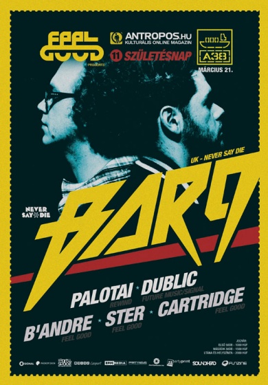 Elővételes Jegyek: http://www.a38.hu/hu/jegyvasarlas/program/bar-9-uk-palotai-dublic-b-andre-ster-cartridge