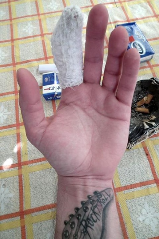 -Tegnap este sikeresen elvágtam a bal mutatóujjamat késélezés közben. Persze sikerült teljesen csontig hatolnom, hogy véletlenül se tudjunk ma és holnap színpadra lépni... Baromira idegesít a dolog, még gondolkoztam is, hogy elmegyünk ma Egerbe, de a józan ész döntött. A sürgősségin összekapcsolták, úgyhogy nem lesz vele gond, viszont így nem tudnék normálisan gitározni a napokban. Nagyon sajnálom, elnézést kérek a közönségtől, a Hátsó Ajtó másik két tagjától, Tomitól és Gábortól, és a Rómeó Vérzik zenekartól, hogy így alakult a helyzet, de sajnos balesetek előfordulnak. Az biztos, hogy tanultam a dologból és legközelebb koncert előtt biztosan nem élezek meg egy kurva kést se! Remélem valahogy majd pótolni tudjuk az elmaradt koncerteket! - mondta Maráczi Péter énekes gitáros.