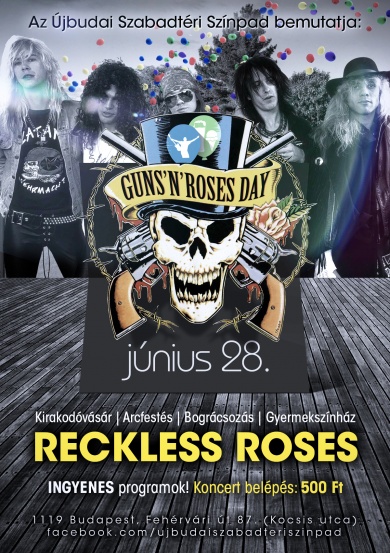 A rocktörténelem egyik legsikeresebb zenekara, az 1980-as évek végének, ´90-es évek elejének meghatározó együttese. Világszerte több mint 100 millió albumot adtak el, ebből csak az Amerikai Egyesült Államokban 46 milliót. 2012-ben a Rock and Roll Hall of Fame legendái közé is beiktatták a zenekart.” - Írja a Wikipédia. Tagadhatatlan, bár a számbeli statisztika egy dolog, ki ne ismerne legalább egyet olyan örökérvényű – akár rádiók által is játszott- slágereik közül, mint a November Rain, Don´t Cry, Sweet Child O´mine, Paradise City, vagy épp a Terminator 2-ben is elhangzott You Could Be Mine? Június 28-án a Reckless Roses zenekar tolmácsolásában - egy közel két órás műsor keretében- csendülnek fel a legsikeresebb Guns´n´roses számok!