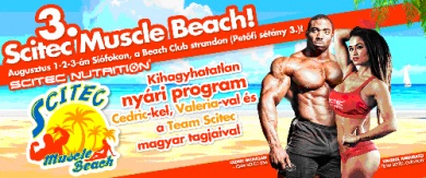 Immár harmadik alkalommal kerül megrendezésre a Scitec Nutrition legizgalmasabb nyári rendezvénye, a Scitec Muscle Beach. Az elmúlt két évben minden várakozást felülmúlt az esemény népszerűsége, így idén is egy kivételesen jó bulira van kilátás. A siófoki Borsodi Beachen ott lesz Valeria Ammirato, világbajnok, az Amatőr Bikini Olimpia első helyezettje, a Team Scitec USA nagyágyúja, Cedric McMillan valamint a Team Scitec Magyarország sztárjainak színe-java, s természetesen fantasztikus programok, izgalmas versenyek, szabadtéri edzési lehetőség és SCITEC ajándékok is várják az érdeklődőket. A színes programkínálat és a kiváló hangulat garantált. A Balatont és az izgalmas nyári éjszakákat talán már meg sem kell említeni…