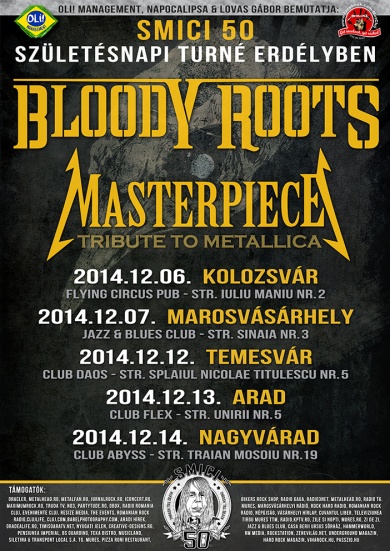 December 6-án a kolozsvári Flying CIRCUS Pub-ban kezdi a Bloody Roots két hétvégét érintő, 5 állomásos erdélyi turnéját, majd másnap Marosvásárhelyen a Jazz and Blues Clubban lépnek fel! A következő hétvégén Temesvár, Arad és Nagyvárad következnek!