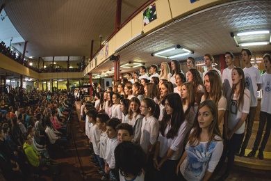 A Szigetszentmiklósi Battyhány Kázmér Gimnázium meghívására a tanintézményben adott koncertet hétfő délelőtt a Budapest Voices. Az 1 órás repertoárba egy különlegesség is belefért, ráadásul a fellépés legelején, amikor az iskola nagy létszámú kórusával énekelték az Adjon az ég című feldolgozást. A koncertet mintegy 600 tanuló és a teljes tanári kar tekintette meg.