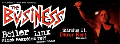 Az est skinhead hősei, mai napig nem kevesebb lendülettel és alázattal tolják a Business dalokat. Talán reménykedhetünk benne, hogy az ismert „slágereik” is előkerülnek ezen az estén (Harry May, Suburban Rebels, Hardcore Hooligan, Spirit of The Street, England 5 - Germany 1…).