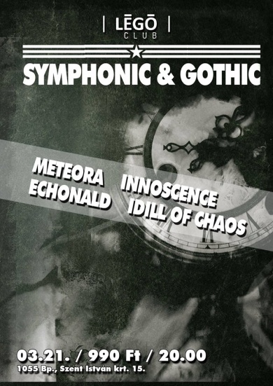 A nagysikerű Szimfonikus Metal Előszilveszteren felbuzdulva, márciustól havi egy-egy napot a szimfonikus és gótikus muzsikáknak szentel a fővárosi Légó Club. Minden hónapban egyszer, az említett stílusokhoz kapcsolható hazai zenekarok lépnek fel, időnként egyéb kulturális programmal kiegészítve. A sorozat első felvonására március 21-én szombaton kerül sor. Az est keretében, egyből négy kitűnő együttes lép színpadra a műfaj rajongónak nagy örömére. A koncerteket hajnalig tartó rockdiszkó követi, melyben természetesen a gothic-, symphonic-, melodic-, folk- metal slágerek dominálnak.