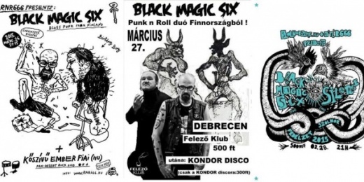 Ismét Magyarországra látogat (hetedik alkalommal!) a finn BLACK MAGIC SIX!. Magyarországi tapasztalataikat egy mondatba sűrítve így foglalták össze: „Ha mi annyit innánk mint ti, már rég halottak lennénk.” Finnország hivatalos trash-blues-punk bandája Eredetileg – ahogy a nevük mutatja – 6 tagú zenekarnak indult, viszont J-Tan (gitár) és az isteni Lew Siffer (dob) kivételével a többiek elfelejtették látogatni a próbákat.