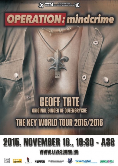 Saját zenekarával érkezik Budapestre november 16-án Geoff Tate. A Queensrÿche egykori frontembere az A38 Hajón játszik Operation: Mindcime nevű, válogatott zenészeket felvonultató csapatával, ahol a The Key című friss lemezüket mutatják be, és persze a múlt néhány klasszikusa is előkerül, elsősorban a zenekar nevét adó albumról.