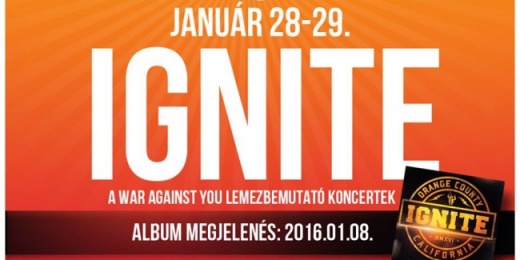 2016. január 8-án új lemezzel, ezt követően pedig európai turnéval örvendezteti meg rajongóit az Ignite. A korong a Century Media gondozásában jelenik meg és az A War Against You címet viseli. A zenekar legutóbbi kiadványa, az Our Darkest Day 2006-ban került nyilvánosságra, így tíz év elteltével igencsak örömmel tölt el az új lemez érkezése. A Téglás Zoli vezette kaliforniai dallamos hardcore-punk csapat a körútját dupla budapesti koncerttel zárja.