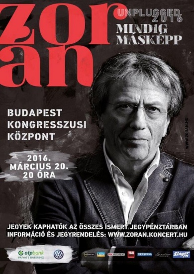 23 év után ismét akusztikus koncerttel örvendezteti meg rajongóit Zorán 2016. március 20-án, a Budapest Kongresszusi Központban. Sőt, a „mindig másképp” jegyében ezúttal vonósnégyes is megszólal a különleges esten.