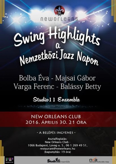 Swing Highlights – azaz „éles megvilágításba” helyezzük a ´30-as évektől napjainkig ívelő swing - frivol, fehér inges, dohányfüstös miliőjét. Többek között Ella Fitzgerald, Frank Sinatra dalaival ezt a hangulatot idézik fel Bolba Éva, Majsai Gábor, Varga Ferenc, Balássy Betty és a Studio11 Ensemble. Fly Me To The Moon, The Lady Is A Tramp, Makin´ Whoopee, – úgy izzanak fel a ritmusok, mint a Las Vegas-t jelző tábla a sivatagi napsütésben..